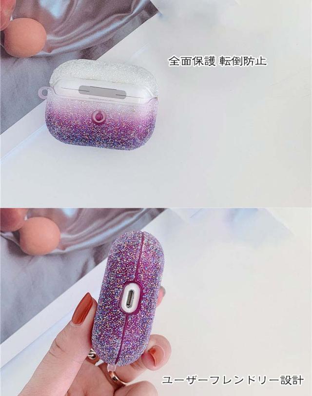 Apple AirPods pro ケース カバー アップル イヤホン 充電穴付き ラメ入り かわいい きらきら エレガント おしゃれ 薄型 便利 耐衝撃 ハードカバー/ケース 保護カバー 収納 エアーポッズプロプロ えあーぽっずぷろ