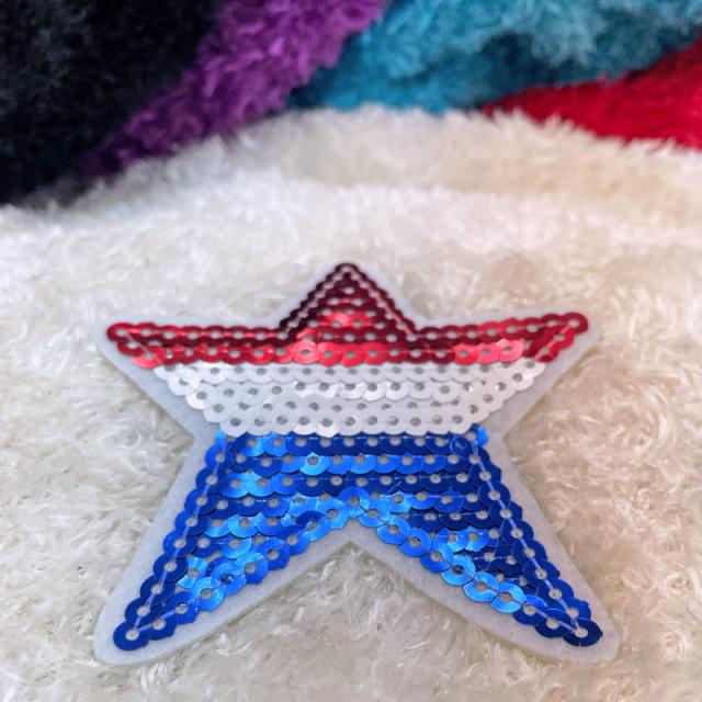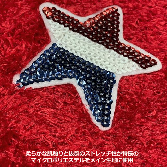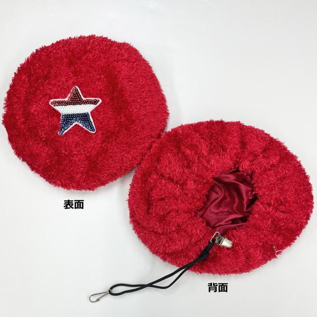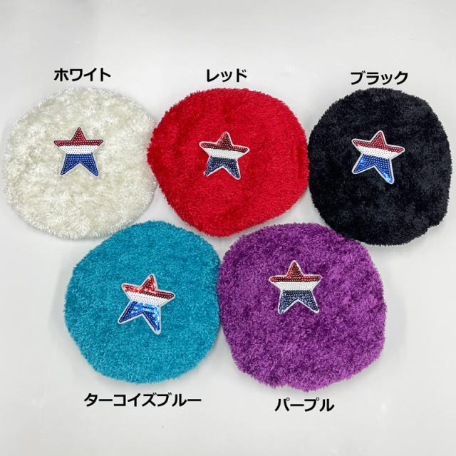 キラキラと輝くスパンコールのスターとニット製のボンボンが付いています
