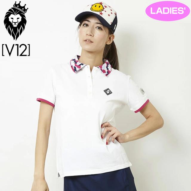 V12 ゴルフ ヴィ・トゥエルヴ レディース カモカラー 半袖ポロシャツ V121810-CT12 02/ホワイト 春夏【新品】YAAQ V12 GOLF CAMO 迷彩柄 無地 シンプル 半そで トップス ゴルフウェア レディス
