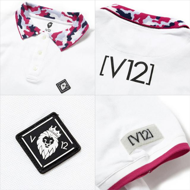 検索用: 綿100% CAMO 迷彩柄 V12 VTWELVE ヴィトゥエルヴ ブイトゥエルブ 半そでポロシャツ ゴルフウエア ゴルフウェア レディースウエア レディースウェア おしゃれ オシャレ ハイブランド 女性用 レディース レディス
