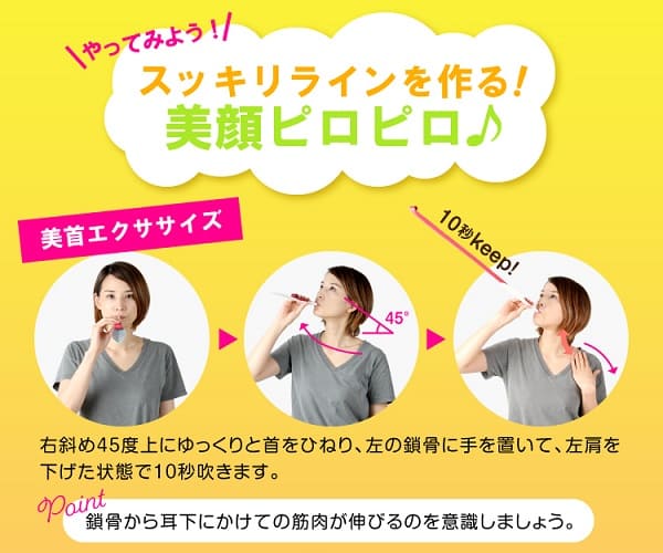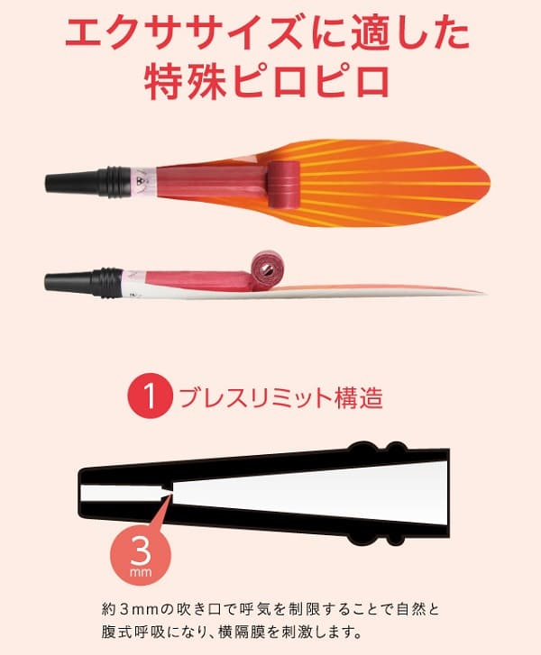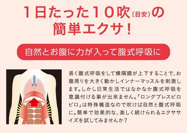 TV・雑誌で話題沸騰、深く息をするだけのロングブレスが気になるボディを直撃!約1mの特殊ロングピロピロがボディにガンガン響く!