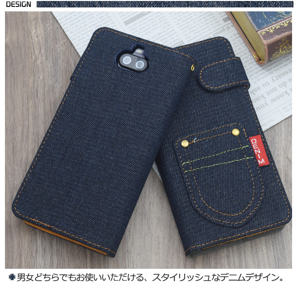 デニムデザインの手帳型ケース。