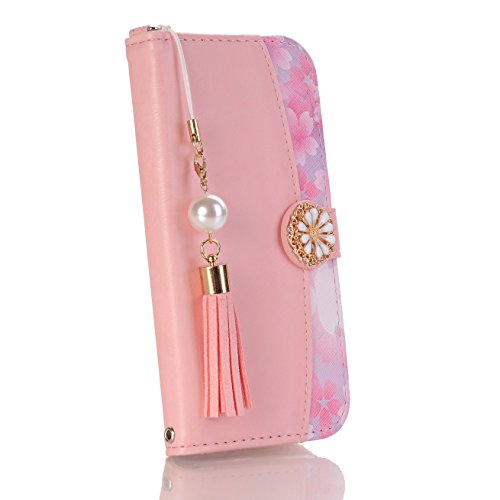 iphone8 plus ケース iphone7 plus ケースケース アイフォン8プラスカバー 手帳型 ケース かわいい花柄 可愛いストラップ付き キラキラ 【BOBOTO】 カード収納 スタンド機能付き マグネット開閉式 財布型 おしゃれ デザイン 小銭収納 全面保護 滑り防止 耐衝撃 (iPhone 8plus/iPhone 7plus B9-桜花柄)