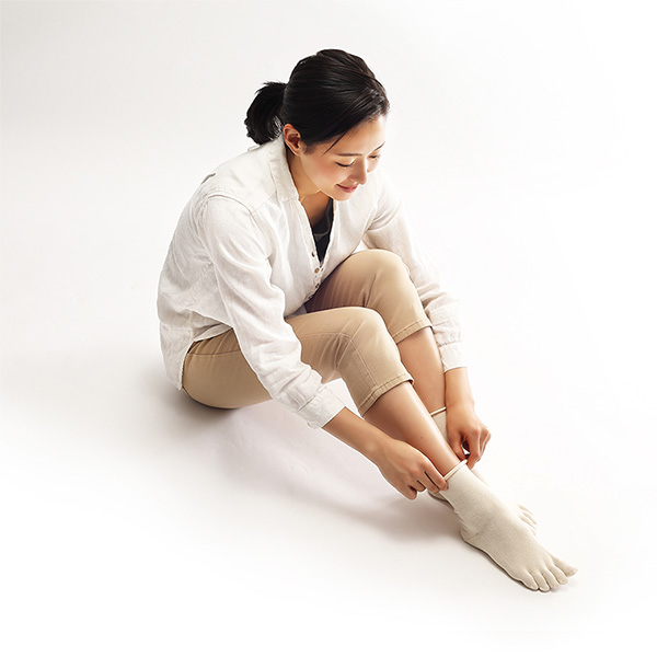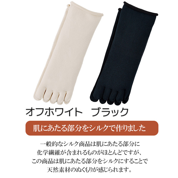 肌側がシルク、外側が綿の5本指ソックス。