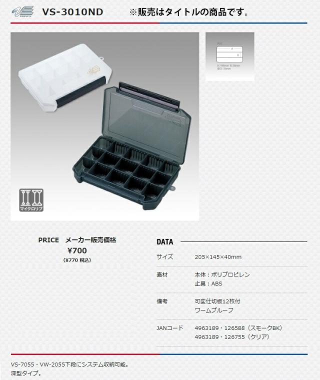 メイホウ タックルボックス 明邦化学 ツールケース VS-3010ND スモークBK サイズ205x145x40mm 可変仕切板12枚付 ワームプルーフ メイホー MEIHO バーサス VERSUS 在庫