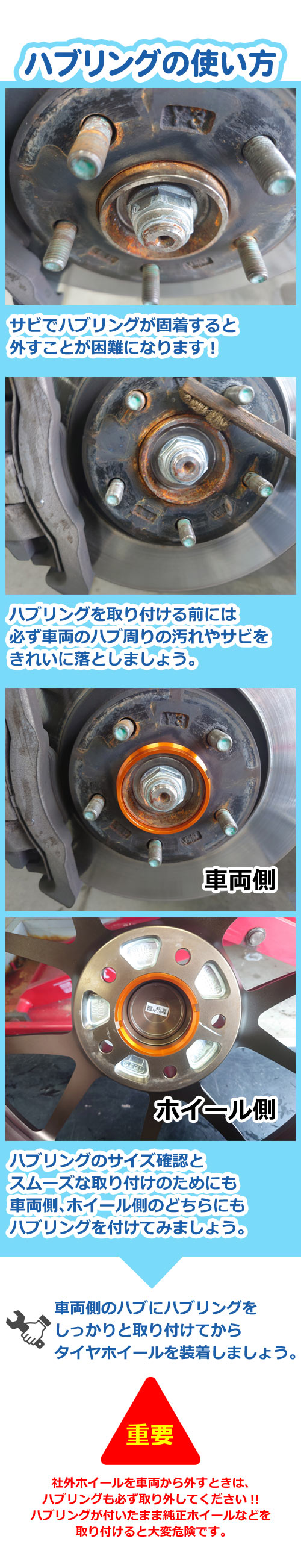 ※車両側ハブとホイールの汚れ等で取り付けが困難な場合がありますので