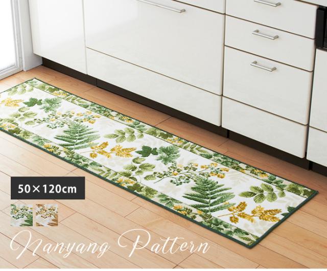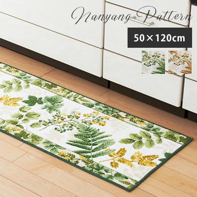 キッチンマット 台所 南洋柄/50×120cm おしゃれ 滑りにくい 日本製 北欧 花柄 ボタニカル アクリル ハワイアン 三愛 【メーカー直送】