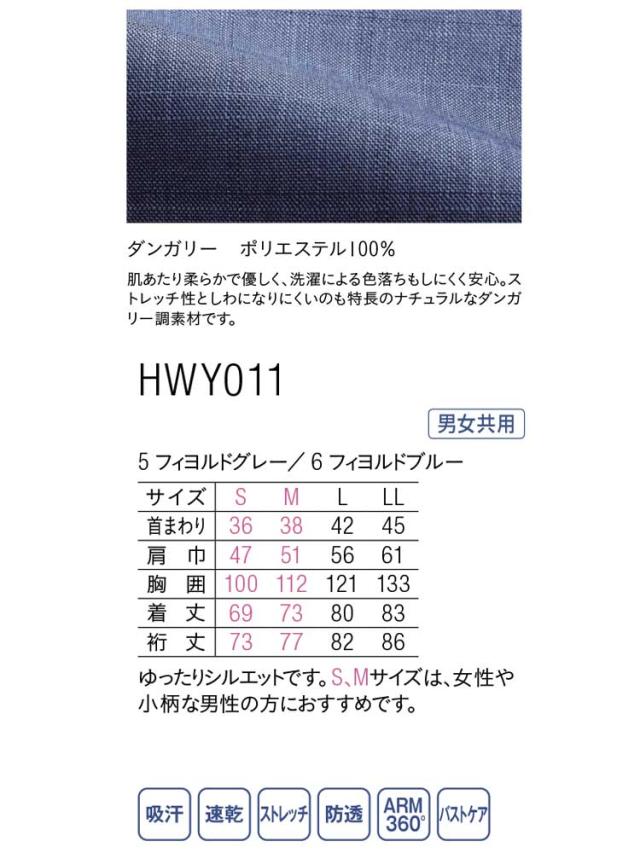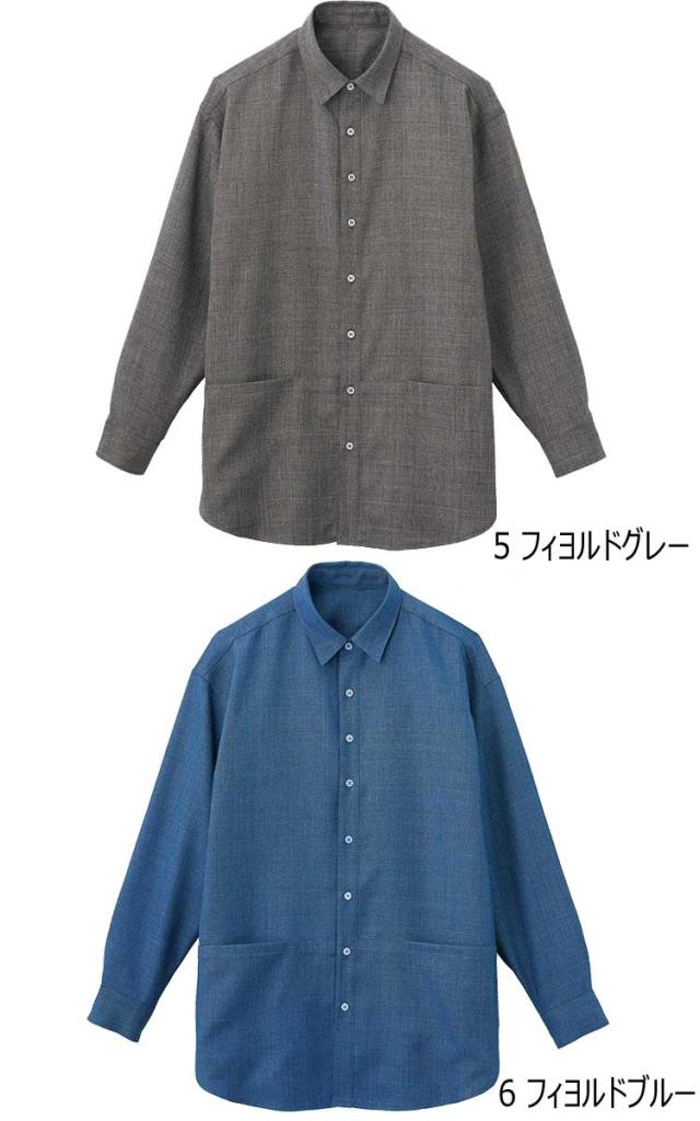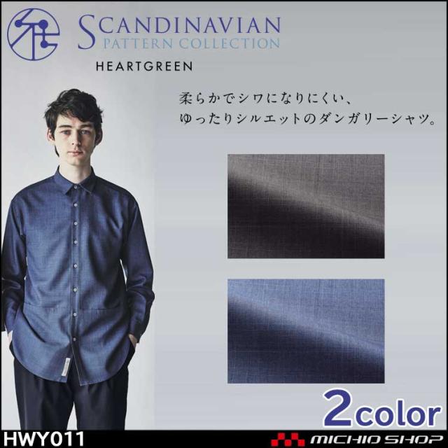介護 ユニフォーム 制服 スカンジナビアンパターン 長袖ダンガリーシャツ HWY011 ハートグリーン 男女兼用