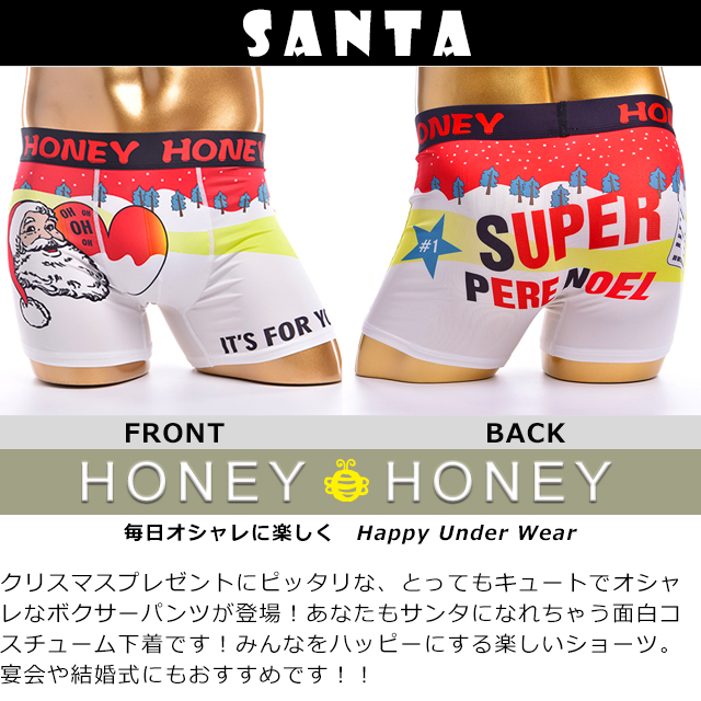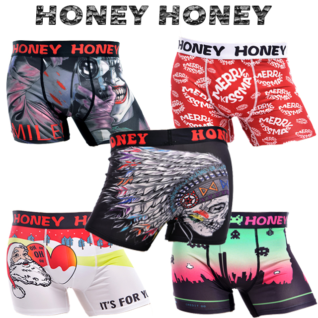 ボクサーパンツ メンズ オシャレ おもしろ かわいい 前綴じ ツルツル 速乾 伸びる ギフト プレゼント M-XL honey8 pc5