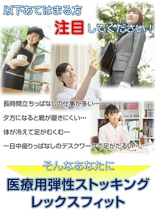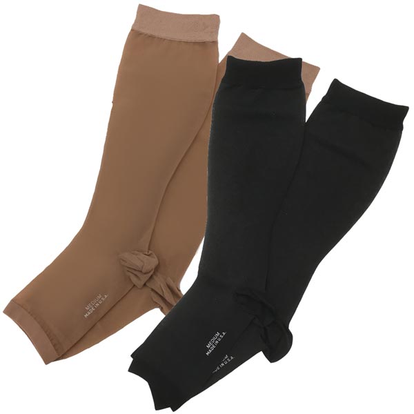 | 日本人の体型研究に基づき、日本人のために開発された圧迫・弾性ストッキング。履き口は食い込みにくいソフト加工。通気性の良いつま先なしタイプ。長時間の立ち仕事の方、しっかりとした圧迫を必要とする方に。 |