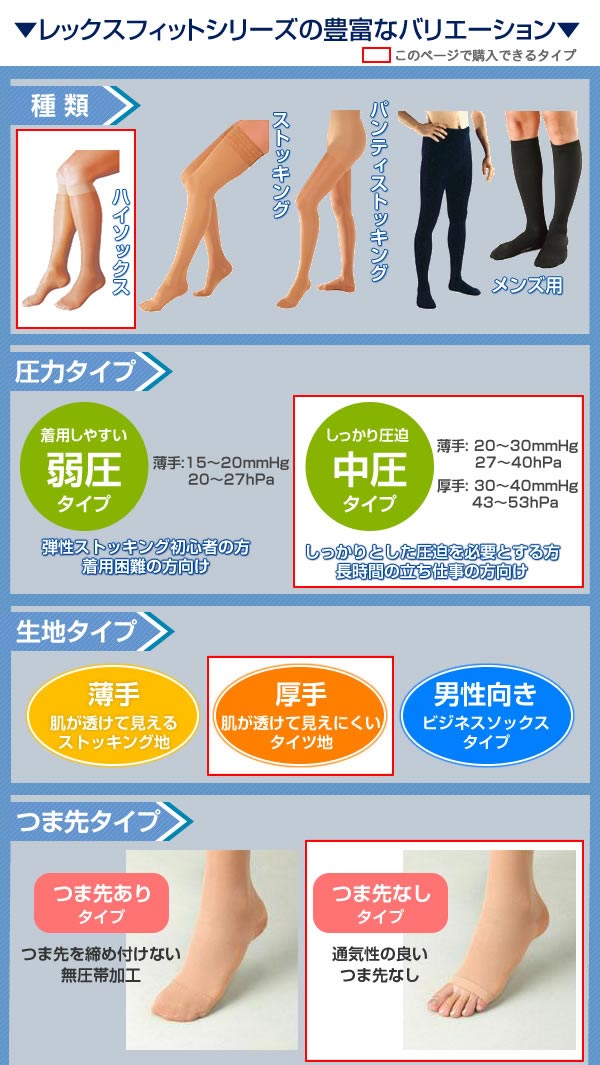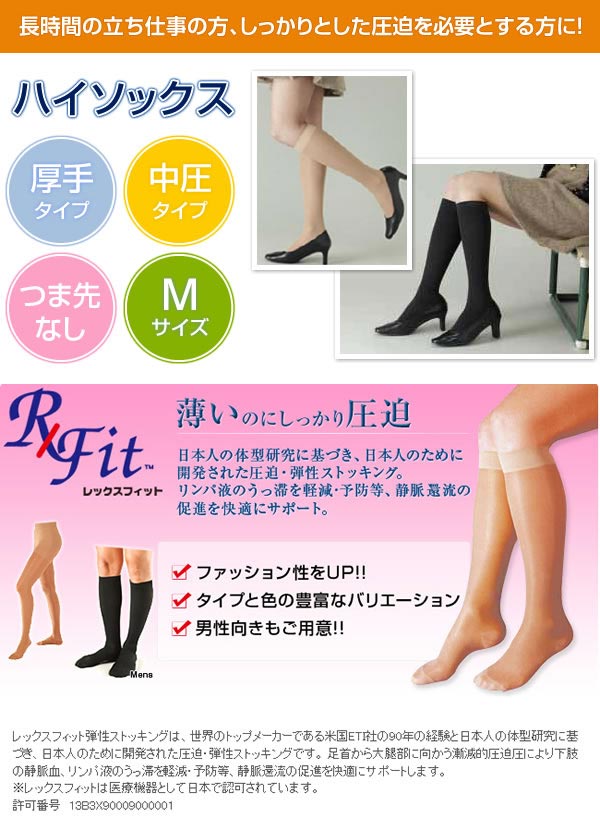 着圧ストッキング 医療用弾性ストッキング レックスフィット 厚手ハイソックス 爪先なし 中圧 Mサイズ 膝丈ストッキング