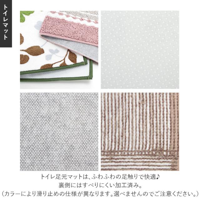 | 商品説明 | ・ふんわりと優しい肌触りで人気のヨコズナトイレタリーシリーズから、特に人気の高い5シリーズをチョイス♪トイレ足元マット・ペーパーホルダーカバー・兼用フタカバー・トイレスリッパのお得な4点セット! ・兼用フタカバーは、普通型(U型・O型)/洗浄・暖房型、様々な形状のフタにジャストフィット!吸盤を貼るだけのラクラク簡単装着で、取り付けにもう迷わない! ・ふっくらと毛足のしっかりとしたパイル糸を使用したトイレ足元マットは、ふわふわの足触りで快適♪裏側にはすべりにくい加工済みで、マットのずれを直す手間もなくてラクチン♪ ・シンプルなデザインのペーパーホルダーカバーは、取り付けが簡単で、予備のトイレットペーパーがもう一つストックできる。 ・トイレスリッパはスリッパの中面もクッションのようにふかふかの感触。足の甲に当たる部分にはさらりと柔らかな生地を使用して、素足がよろこぶ快適な履きごこち♪スタイリッシュな柄でトイレだけでなくルームスリッパとしても活用できる♪ ・トイレ足元マット・ペーパーホルダーカバー・兼用フタカバーの3点は洗濯ネットに入れて簡単にお洗濯が可能!手洗いがOKのスリッパもお手入れラクチンでいつも清潔! |
