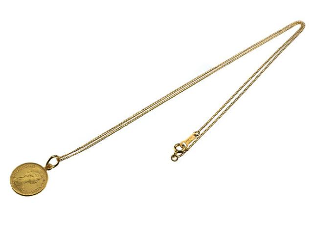 実際に使われていたイギリス硬貨をモチーフにした、コインデザインのペンダント。シルバー925製のボディにゴールドコーティングを施しています。エリザベス2世をデザインしたペンダントは、コインペンダントの中でも特に人気のデザインです。小ぶりながらも高級感のある胸元を演出してくれるペンダントです。