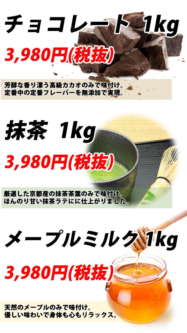 | プレーン | ストロベリー | チョコレート | 抹茶 | メープルミルク | |