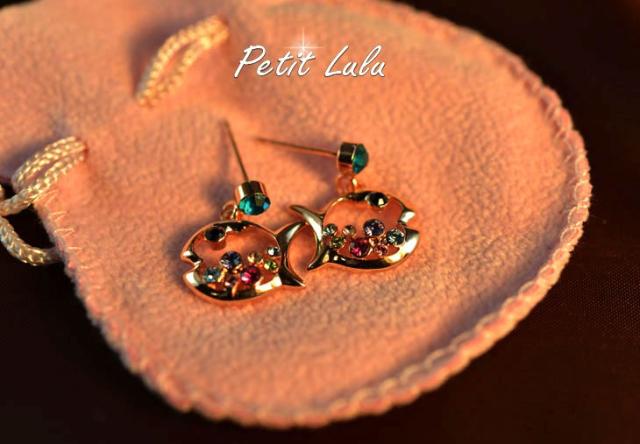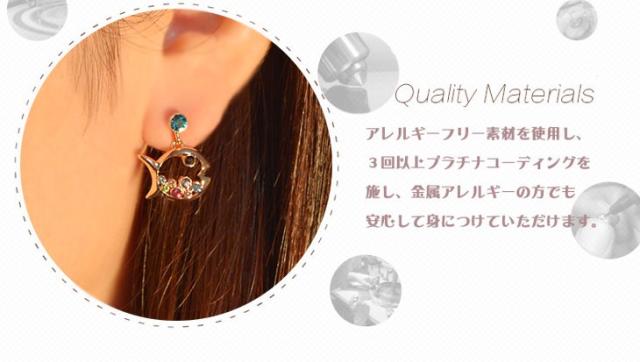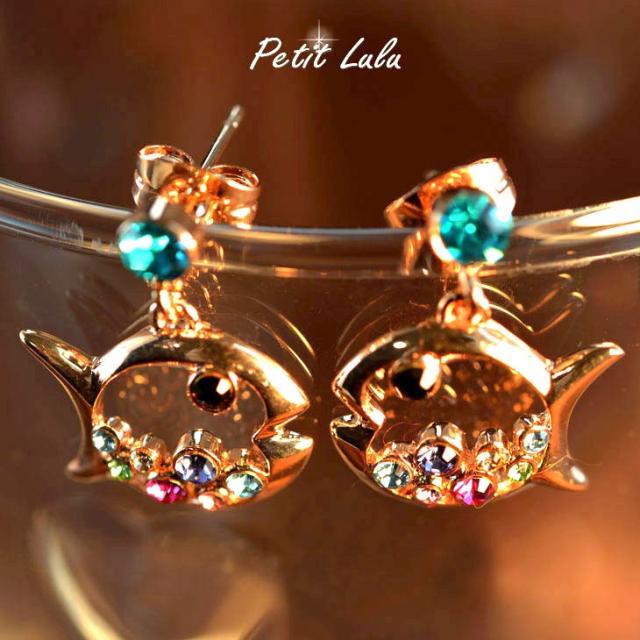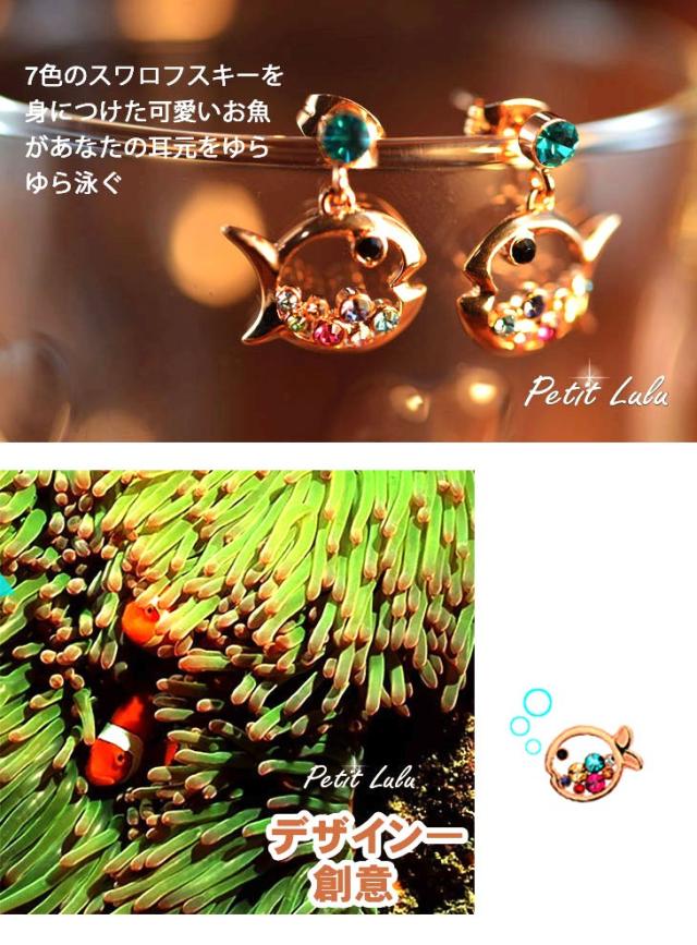 ピアス レディース スワロフスキー 彩石 7色 厄除け 子魚 フープ 揺れる k18 18金RGP 18k プチルル