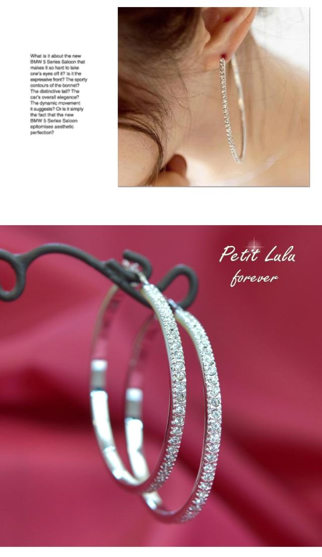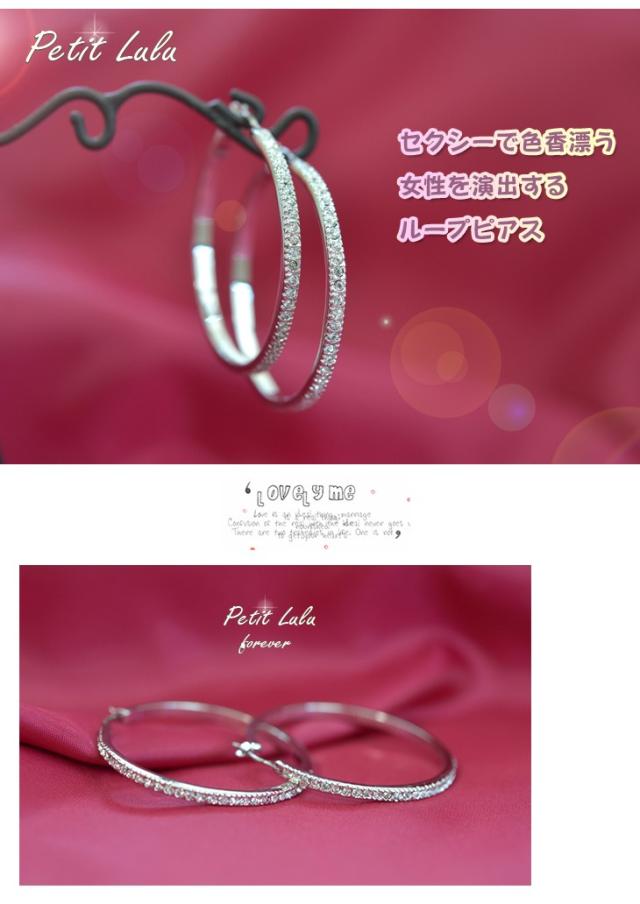 セクシーで色香漂う女性を演出するのにぴったりのループピアスです。定番デザインでありながらふんだんにダイヤモンドCZを並べることで高級感のあるデザインに仕上がりました。夜のお出かけにもピッタリの年齢問わないデザインは女性みんなに着けてもらいたい商品です。