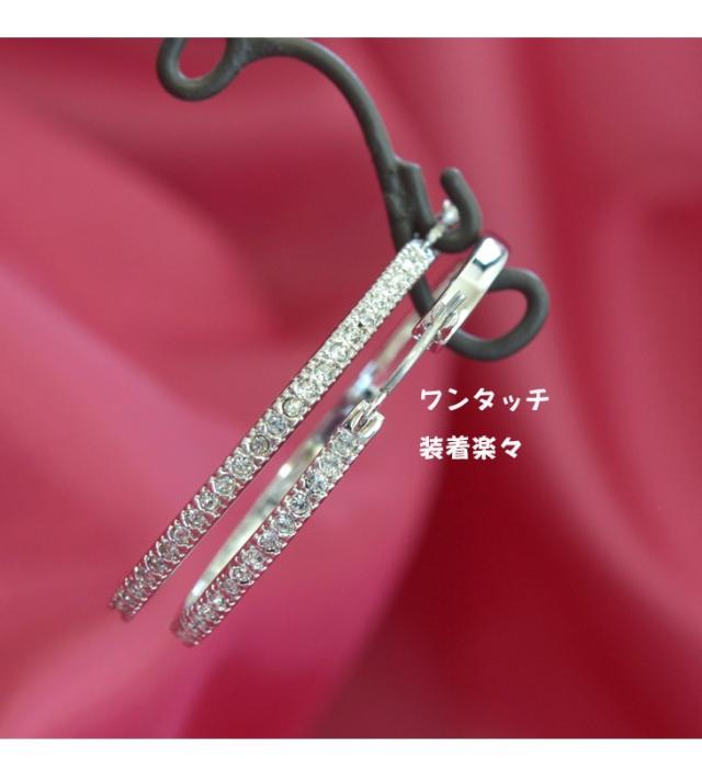 セクシーで色香漂う女性を演出するのにぴったりのループピアスです。定番デザインでありながらふんだんにダイヤモンドCZを並べることで高級感のあるデザインに仕上がりました。夜のお出かけにもピッタリの年齢問わないデザインは女性みんなに着けてもらいたい商品です。 【レビューお約束でかわいい巾着プレゼント中】 金属アレルギーの方でも安心して身につけていただけます。【素 材】:スワロフスキー/真鍮(K18金コーティング) ※コーティングは通常より3倍厚くしております。【サイズ】:縦:3mm 横:38mm 【数 量】:1ペア(2個)【カラー】:ホワイトゴールド【付属品】:絵文字入りピローケース付き(プレゼントに最適) ※レビューを書くとかわいい巾着をプレゼントします。大粒 ビジュー ピアス 大きめパールバックキャッチ キャッチバックキャッチ ロングチェーン ピアス モチーフ