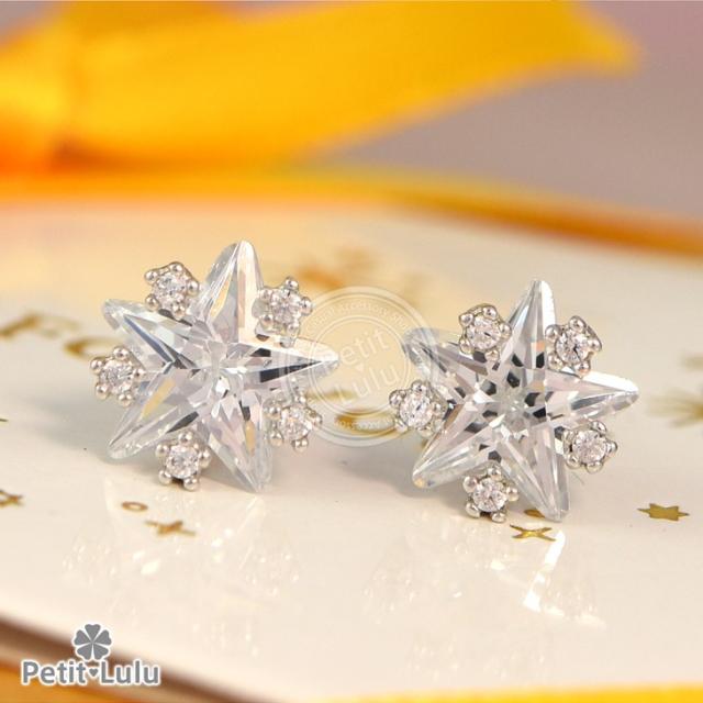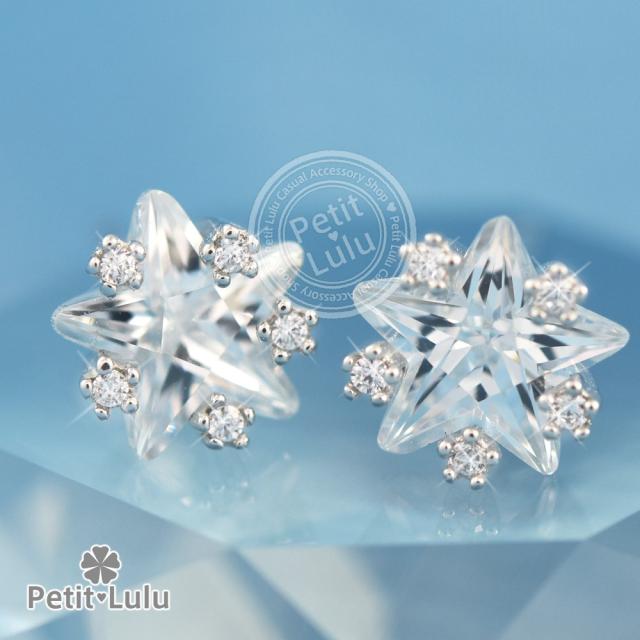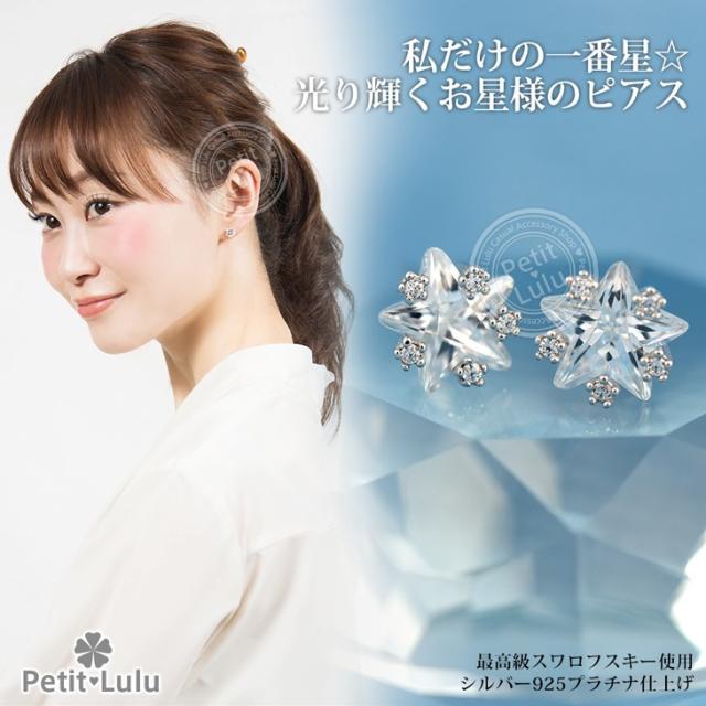 ピアス レディース ダイヤモンドCZ プラチナ仕上げ シルバー925 スター 星 ロマンチック 最高級スワロフスキー