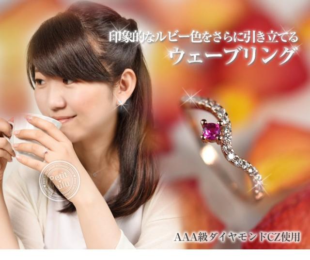 指輪 レディース リング ダイヤモンドCZ ルビー スクエア ハーフエタニティ ラインストーン ウェーブ S字 18K RGP