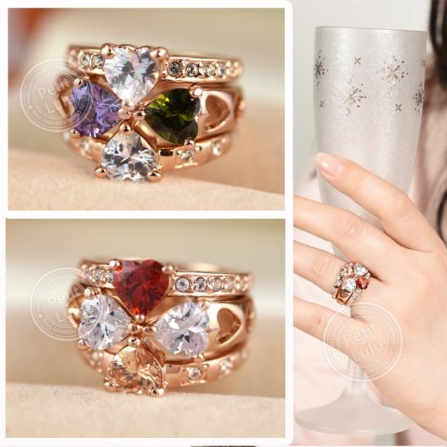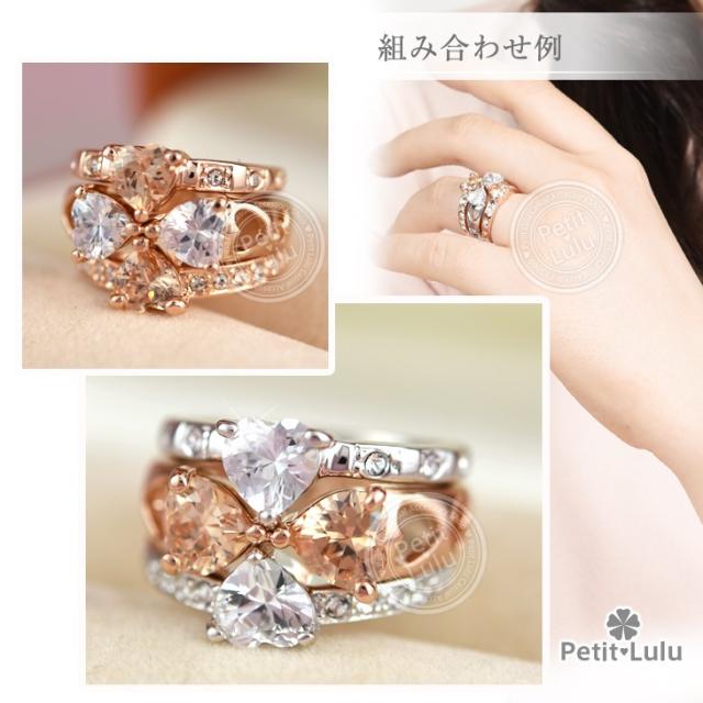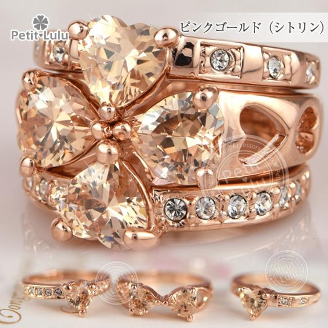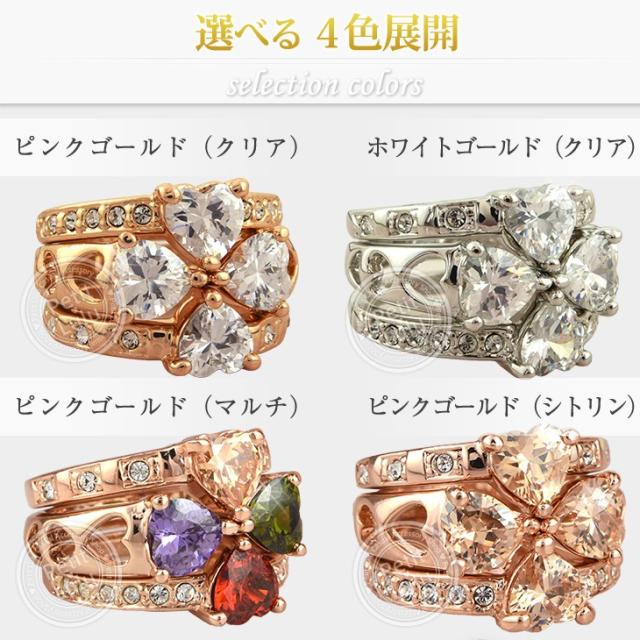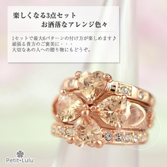 リング 指輪 レディース 最高級スワロフスキー 3連 カラーストーン 彩色 重ね付け 組み合わせ クローバー 四葉 ハート リボン k18 18金RGP 18k 2色展開 4種類