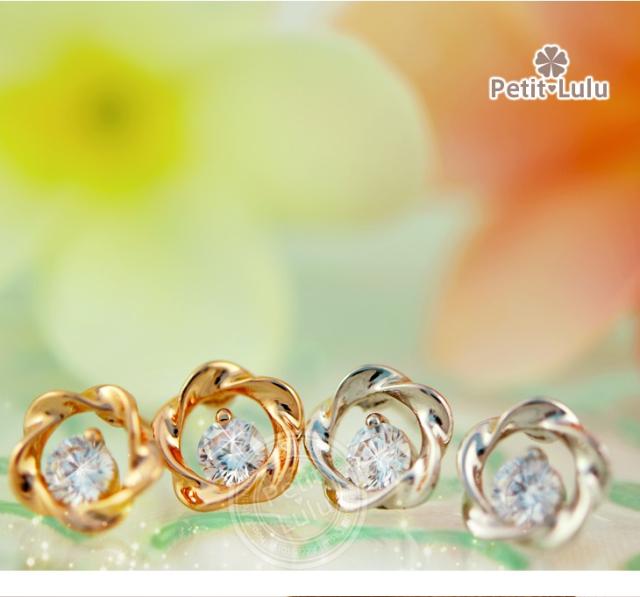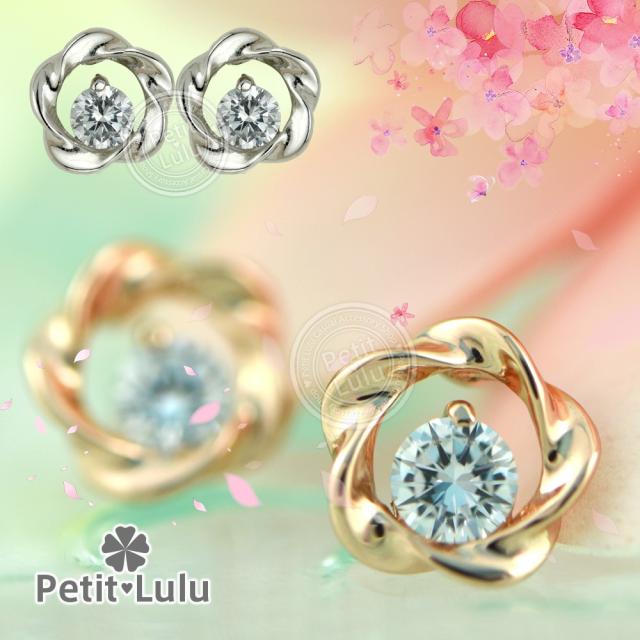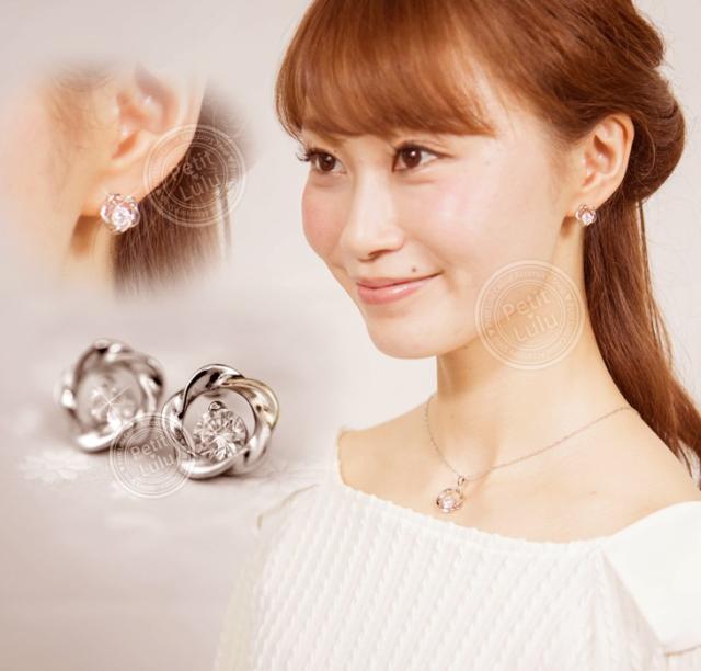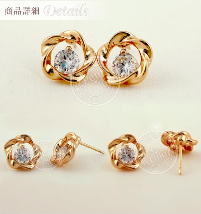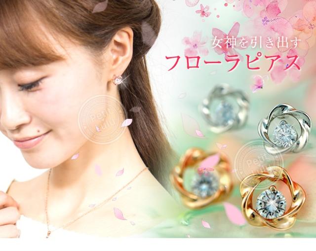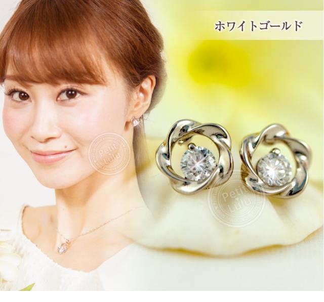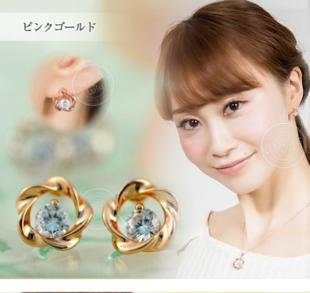 ピアス レディース 最高級スワロフスキー フローラ 女神 スパイラル フラワー 18KRGP 2色展開