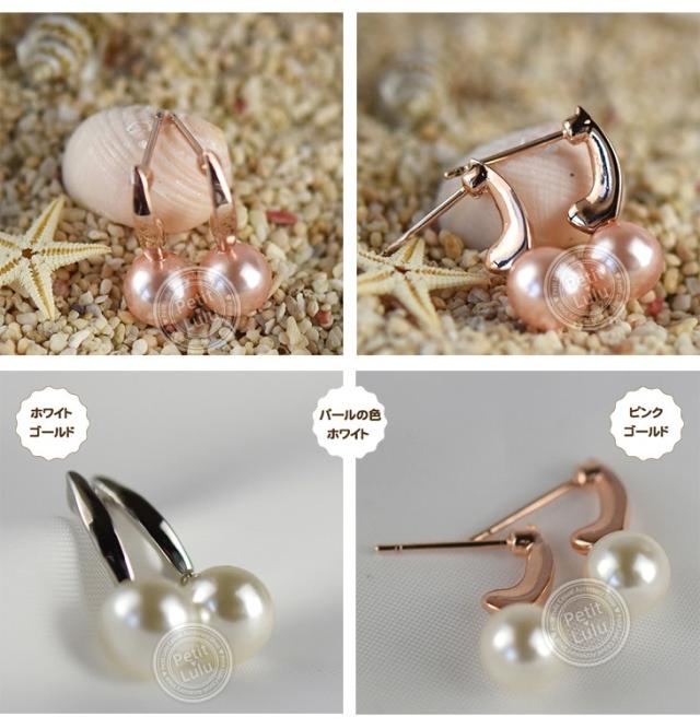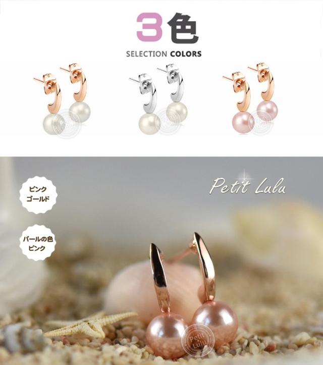 ピアス レディース パール 真珠 フープピアス ホワイト ピンク 一粒 アクセサリー フープ 揺れる 3色展開k18 18金RGP ジュエリー