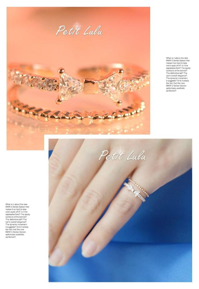 指輪 レディース リング リボン 二連 リング ピンキーリング ファランジリング C型リング フォークリング 最高級スワロフスキー 18K 18KRGP