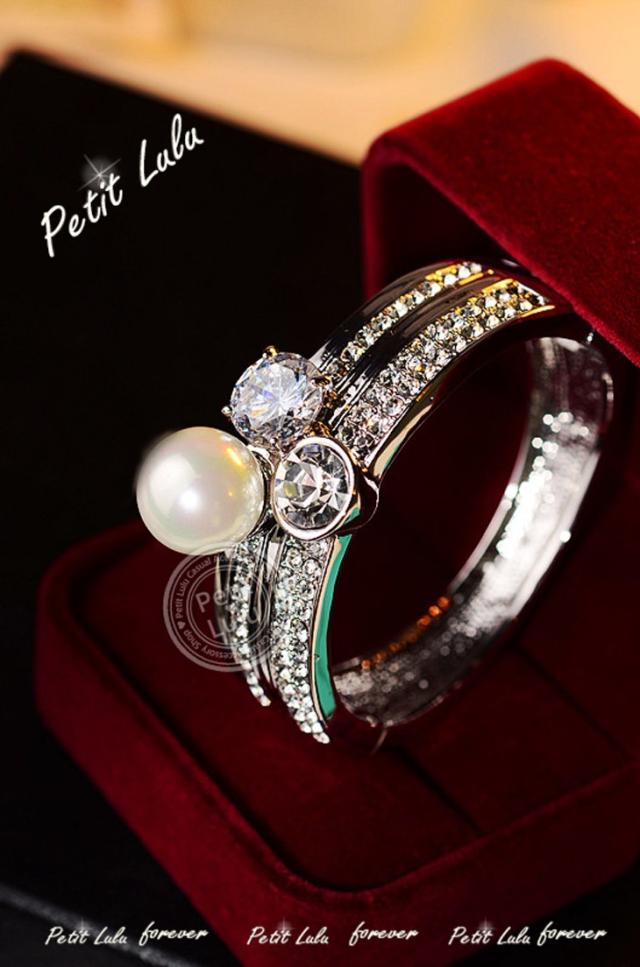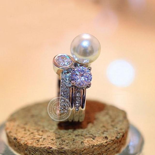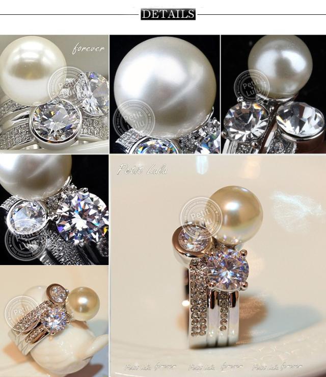 指輪 レディース リング 大粒パール 輝き 豪華 ダイヤモンドCZ 18K プラチナRGP