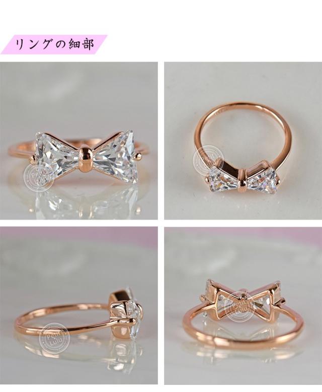 指輪 レディース リング リボンリング 大人キュート リング 最高級スワロフスキー 18K 18金RGP