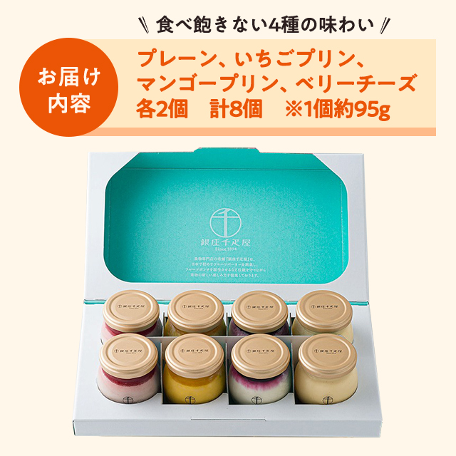 銀座千疋屋 銀座プリン 詰合せ 4種 計8個 千疋屋 プリン スイーツ 洋菓子 ギフト ダイレクト 母の日 父の日 敬老の日 お中元 お歳暮