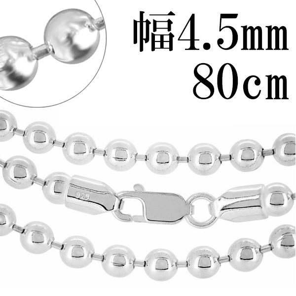 シルバーチェーン ネックレス チェーン ボールチェーン ボール直径4.5mm 80cm シルバー925 銀 ハード ボール 丸 球 シルバー925チェーン