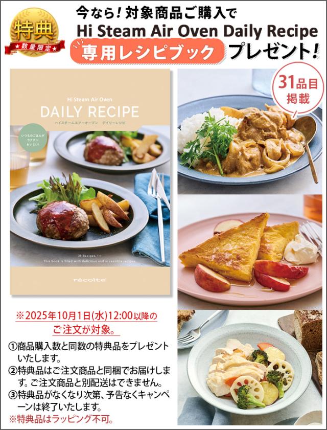 【3大特典付】レシピ付 スチーム オーブン 電気フライヤー 家庭用 ノンフライヤー recolte ハイスチームエアーオーブン レコルト Hi Steam Air Oven RAO-3 コンベクションオーブン 蒸し器 卓上 温め直し グリル ノンオイルヘルシー 揚げ物 送料無料 P10倍