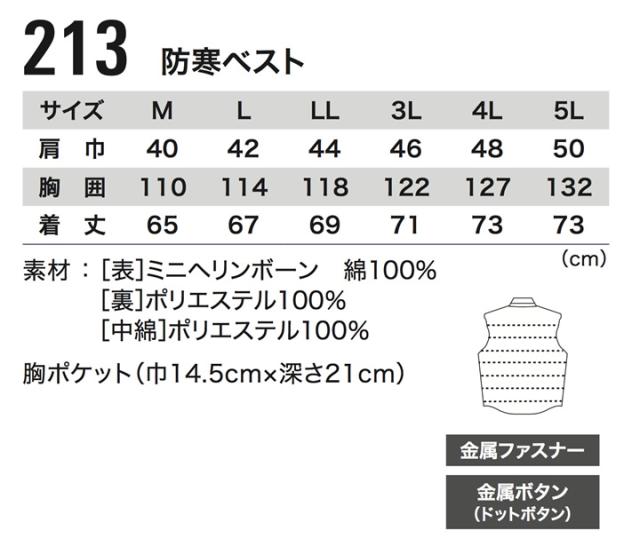 ジーベック 防寒ベスト 213 現場服 保温