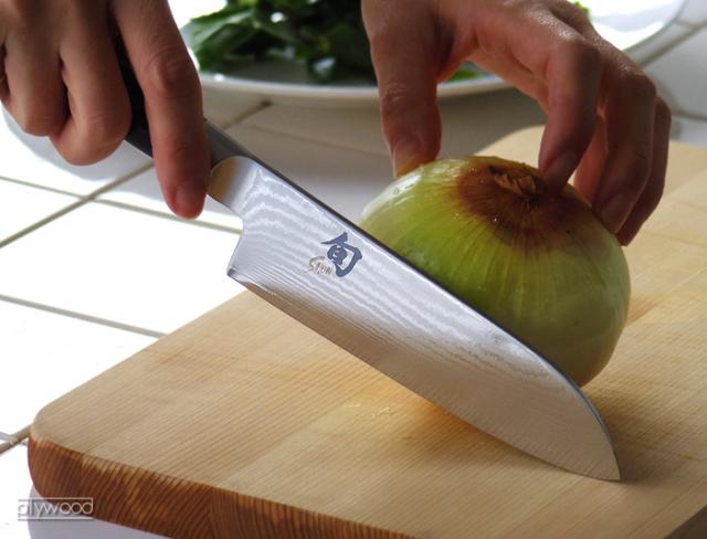 【旬】の三徳包丁は、野菜、魚介、肉、いずれの素材も軽快に切ることができます。包丁のアゴの部分を使えば、ジャガイモの芽など、素材の要らない部分を取り除く作業も可能。毎日の基本的な調理作業を1本でこなせる万能包丁です。 三徳 D はディンプル包丁です。刃体にくぼみがあることで切り離れが良く、作業時に食材が刃体につきにくい包丁です。