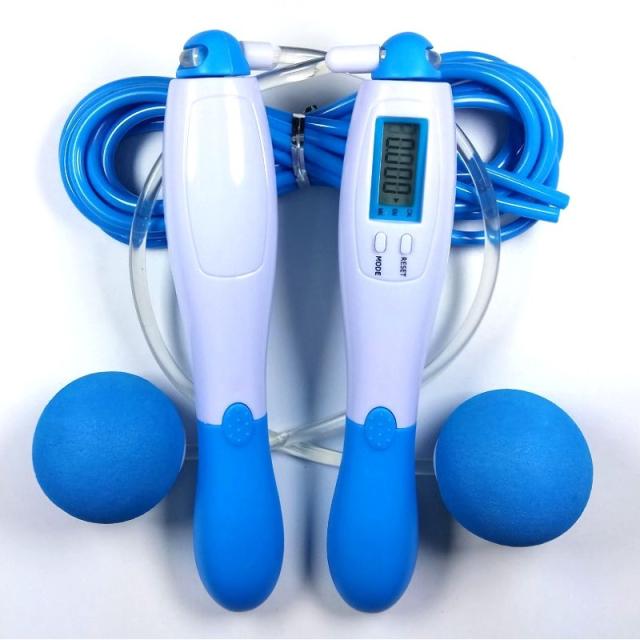 縄跳び デジタル計測機能付き [ブルー] エア縄跳び ボール付き カロリー測定 タイマー 運動 エクササイズ 筋トレ 屋内 屋外 送料無料