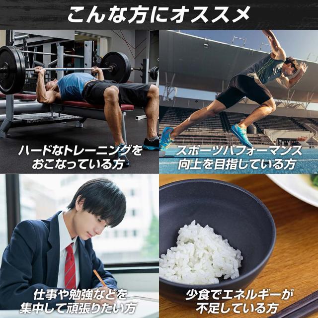付属の30ccスプーン1杯は約20gで、エネルギー約76kcal(1gあたり約3.8kcal)です。運動の量などに合わせて水・プロテインやお好みのドリンクに混ぜてお召し上がりください。