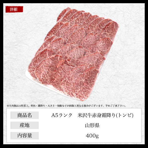 A5ランク 米沢牛赤身霜降り(トンビ) 400g