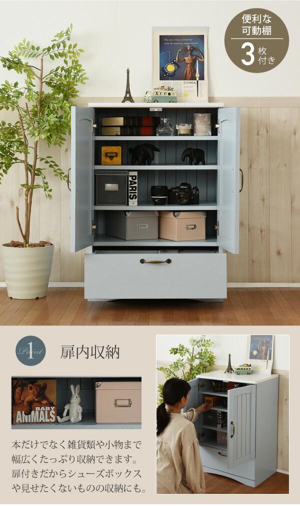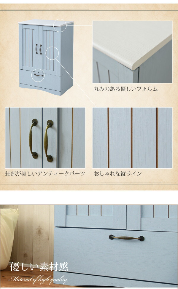 フレンチカントリー 引き出し付き 扉付き チェスト キャビネット 幅60 リビングキャビネット 木製キャビネット 棚 ラック 姫(代引不可)【
