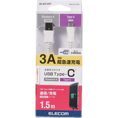 エレコム USB-Cケーブル (A-タイプC) Type-C 1.5m ホワイト MPA-AC15NWH(1個)[変換アダプター・ケーブル類]