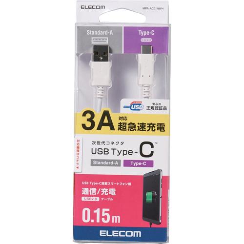 エレコム USB-Cケーブル (A-タイプC) Type-C 15cm ホワイト MPA-AC01NWH(1個)[変換アダプター・ケーブル類]