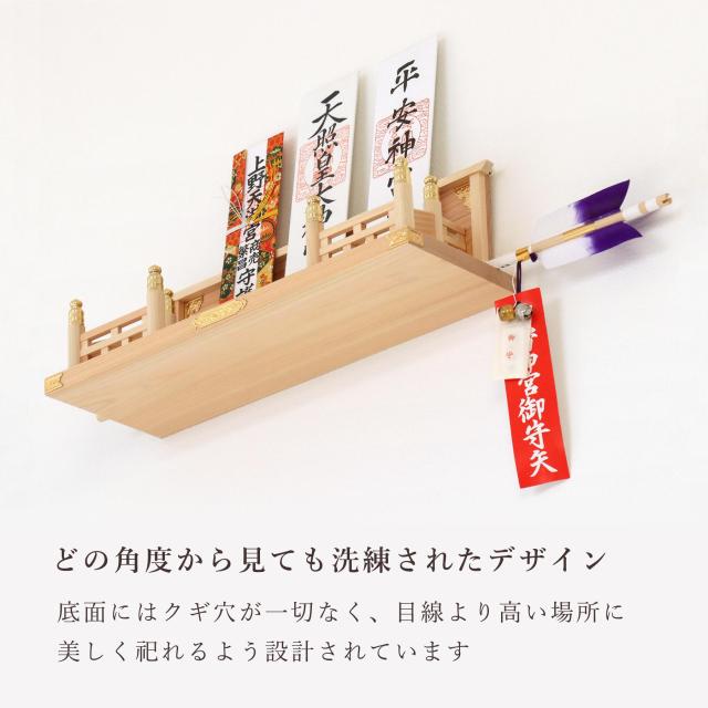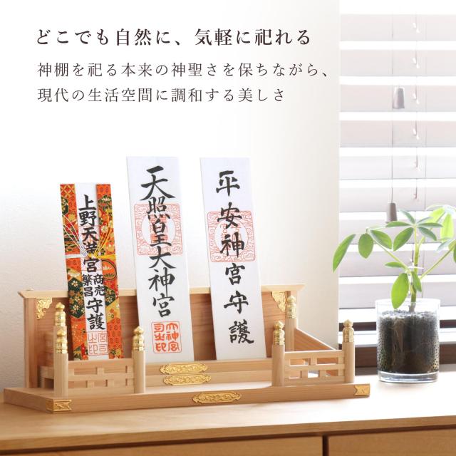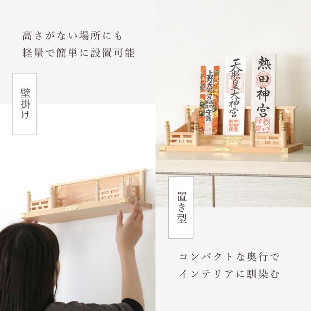 神棚 壁掛け モダン お札立て 鎮守の杜 集う神々 桧と真鍮の神棚 棚板不要 置き型