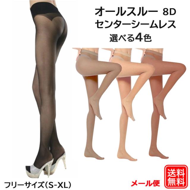 メール便で送料無料 オールスルー センターシームレス 美脚 美尻 ストッキング 8デニール パンスト