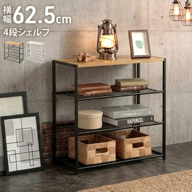 スチールラック 4段 幅60 ラック 棚 オープンラック シェルフ 北欧 「 スチーラ 」 収納ラック 本棚 シェルフ ビンテージ 木製 北欧 おしゃれ 一人暮らし 新生活 軽量 ホワイト ブラック