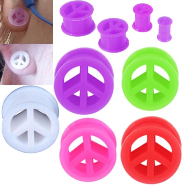 [2G 0G 00G 12mm ボディピアス] ピースマーク シリコン フレア ボディーピアス 2ゲージ 0ゲージ 00ゲージ 12ミリ 12.0mm 1/2 ハーフインチ 平和 プラグ メンズ レディース 男 女 グリーン ピンク パープル レッド ホワイト 赤色 白色 緑色 紫色 柔らかい ホール系 ロゴ