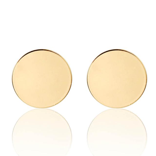 金色の大きな丸い平らなスタッドピアス。