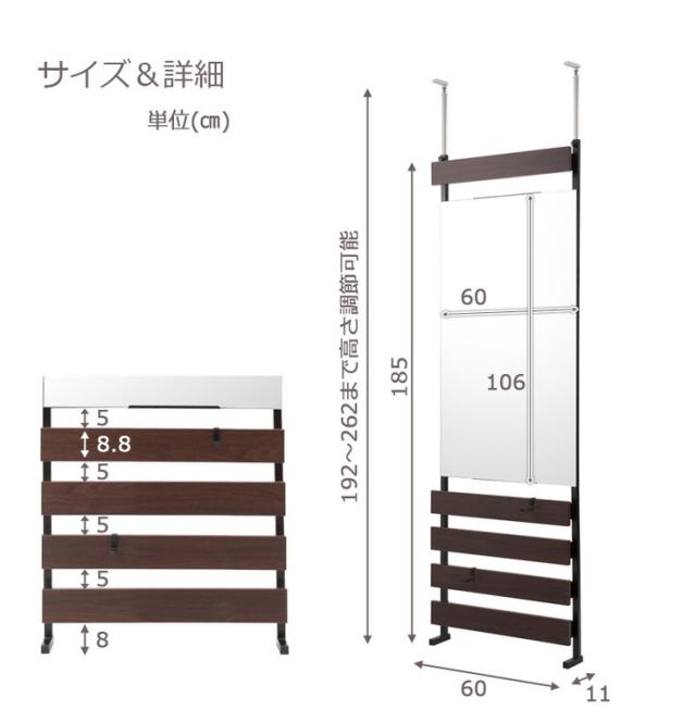 ■商品サイズ/本体:(約)幅60×奥行9(脚部11)×高さ192〜262cm