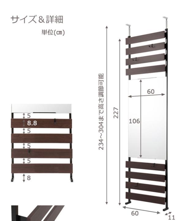 ■商品サイズ/本体:(約)幅60×奥行9(脚部11)×高さ234〜304cm、