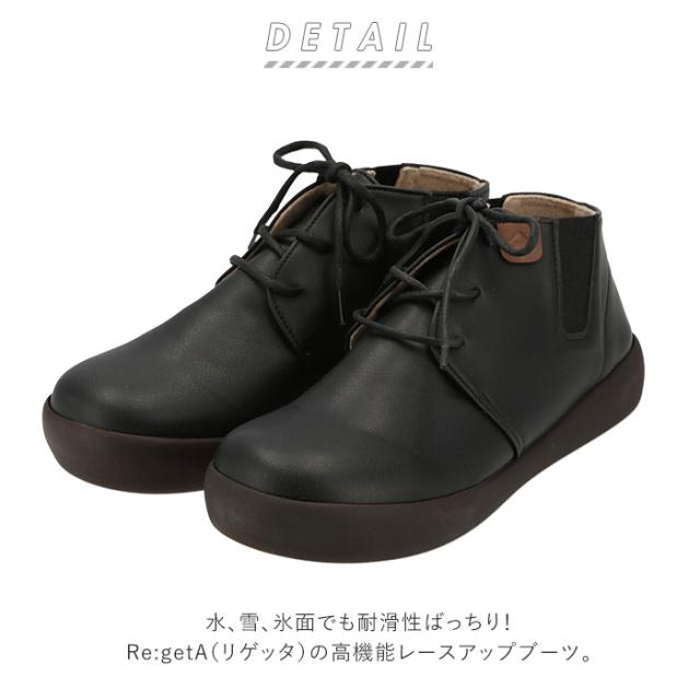 ショートブーツ レディース ぺたんこ 定番 ブーツ ショート レースアップ ローヒール Regetta Canoe リゲッタ カヌー サイドゴア おしゃれ シンプル ノンスリップ 滑りにくい 歩きやすい 履きやすい 大人 かわいい 幅広 ブーティ 冬 秋冬