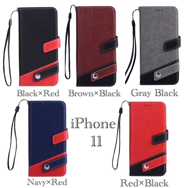 1 iPhone11 6.1 手帳型ケース レザー ツートンカラー マルチ ストラップ おしゃれ 液晶フィルム スマホカバー 携帯ケース シンプル レザーケース