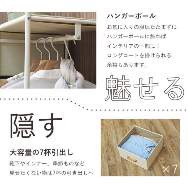 ハンガーラック 引き出し7杯付き ワイド 幅105cm S字フック5個 キャスター付き